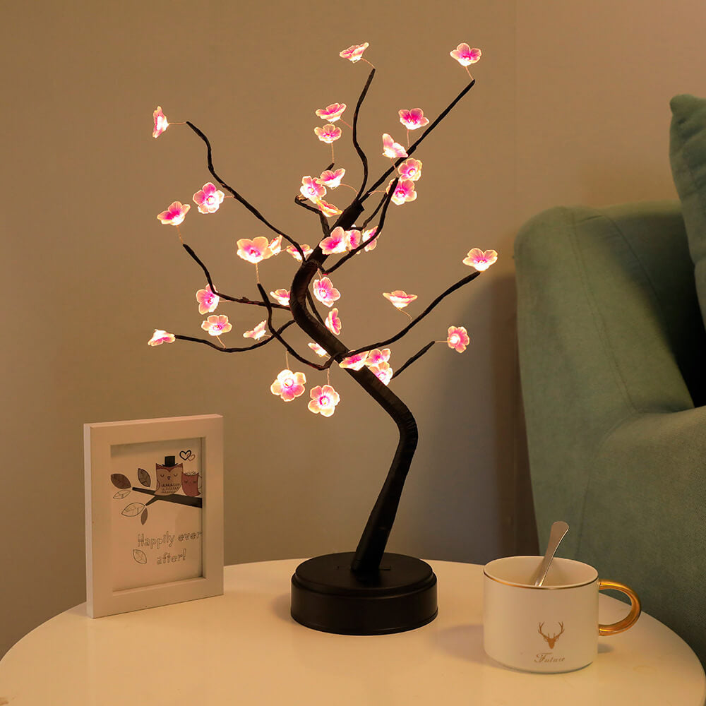 Drzewko nawiązuje do tradycyjnej sztuki bonsai – symbolu harmonii, równowagi i spokoju. Starannie uformowane gałęzie nadają mu elegancki, dekoracyjny charakter, który przyciąga wzrok zarówno w dzień, jak i po zmroku.